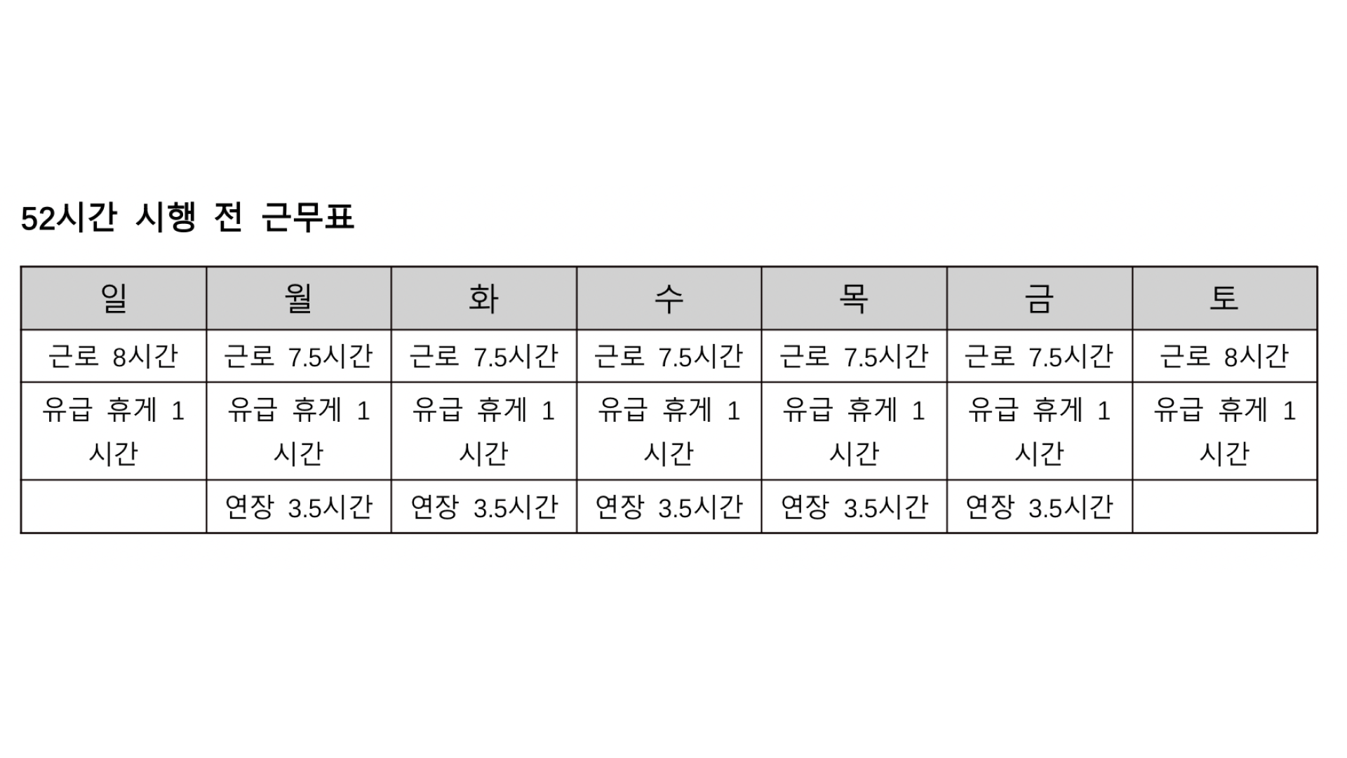 📌 회사 상주 시각(휴게 포함) = 52+26 총 78시간