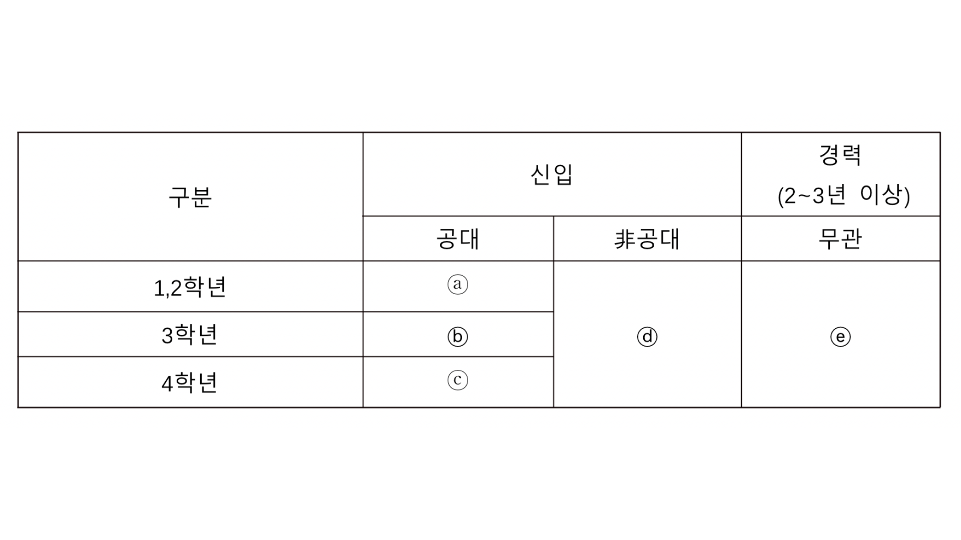 ⓑ 공대 3학년 : 대졸 vs 전문대 재입학이 팽팽하게 맞서는 시기라 보아야 한다.