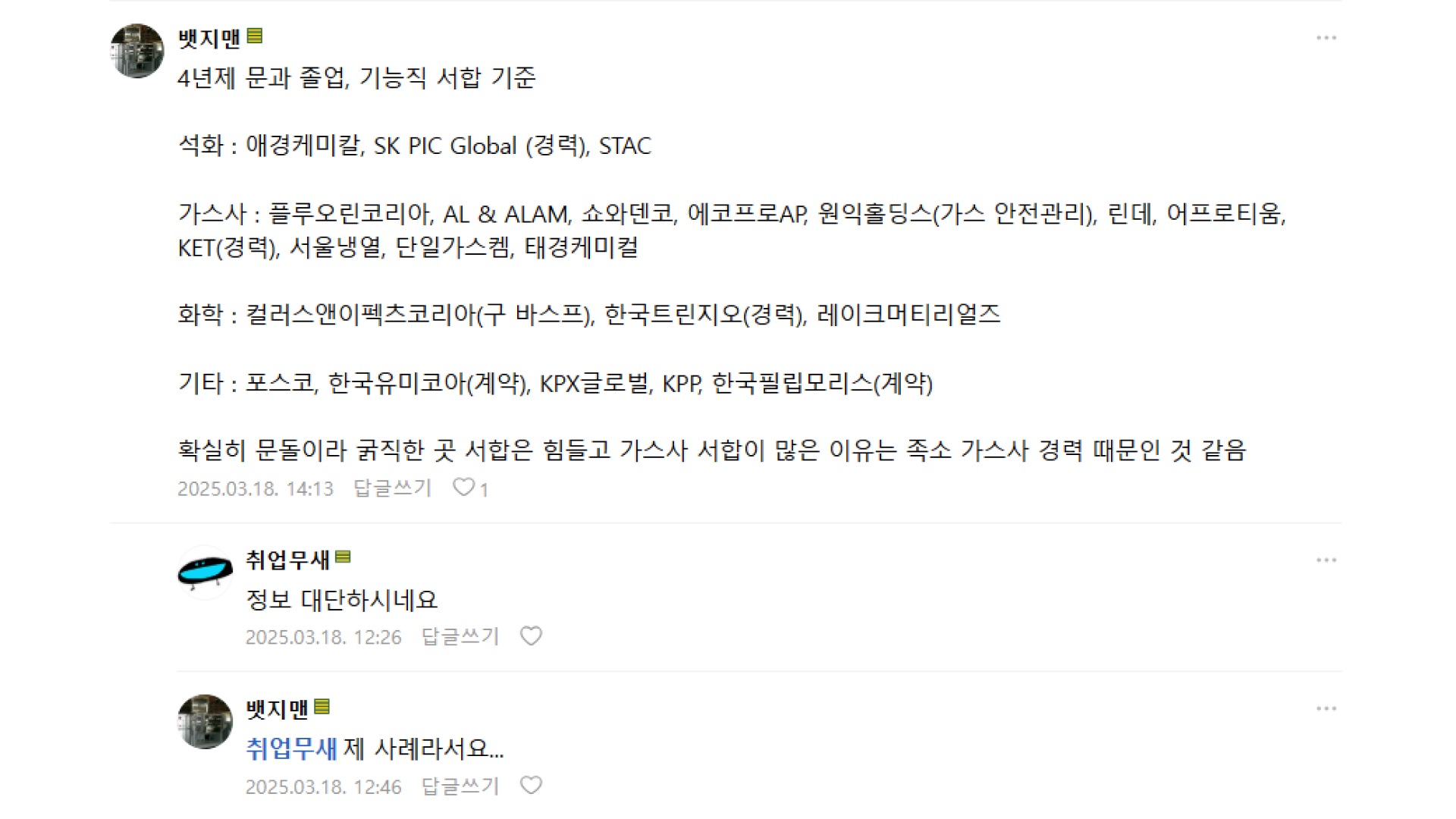 - DIG에어가스 (오퍼를 대졸만 뽑는 추세)