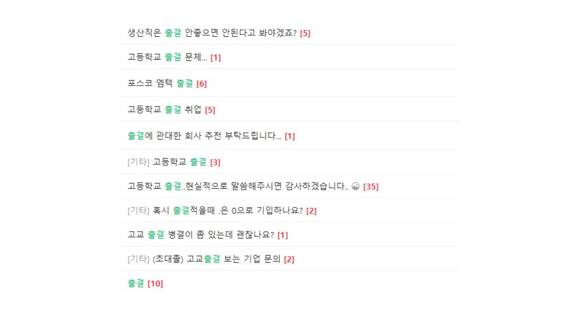 커뮤니티나 취업 카페 등에서 출결을 보지 않는 기업이라 하여 돌아다니는 자료가 있을 겁니다.