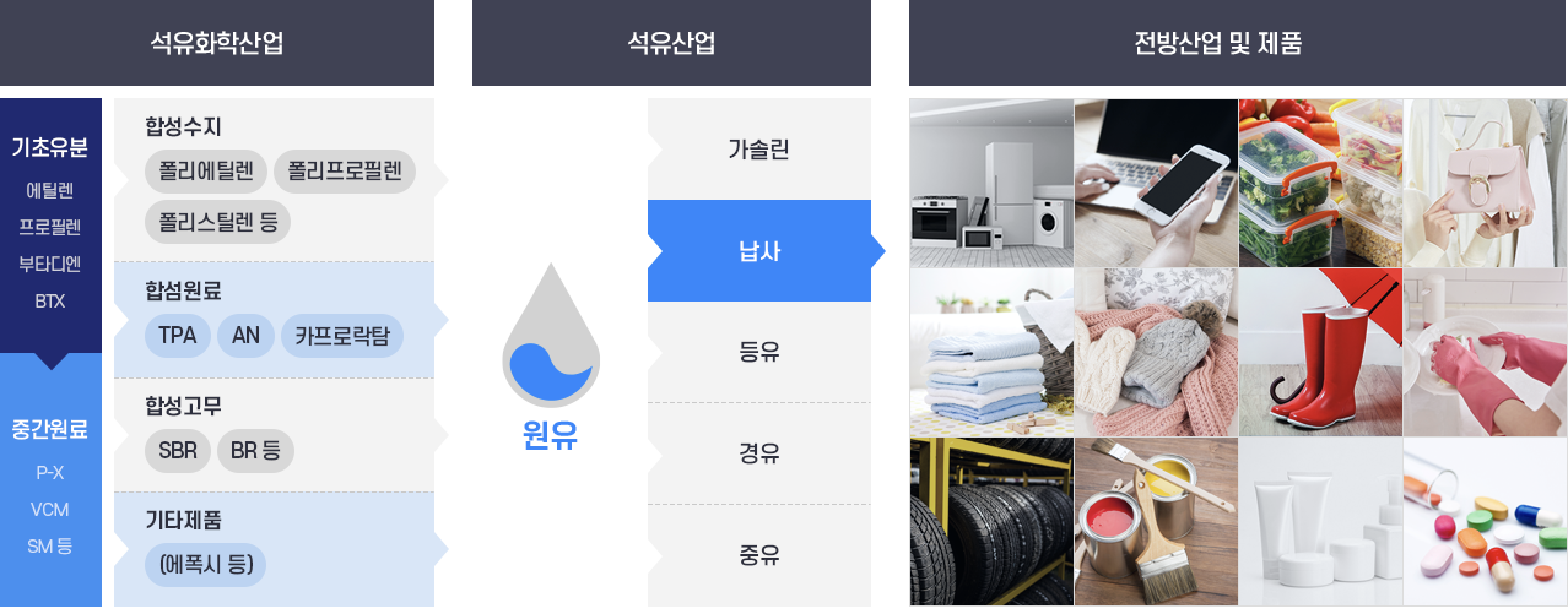우리나라에서는 이러한 제품들을 많이 만들어내기 때문에 납사를 추가적으로 더 수입해온다는 것, 이제 이해가 가시나요?