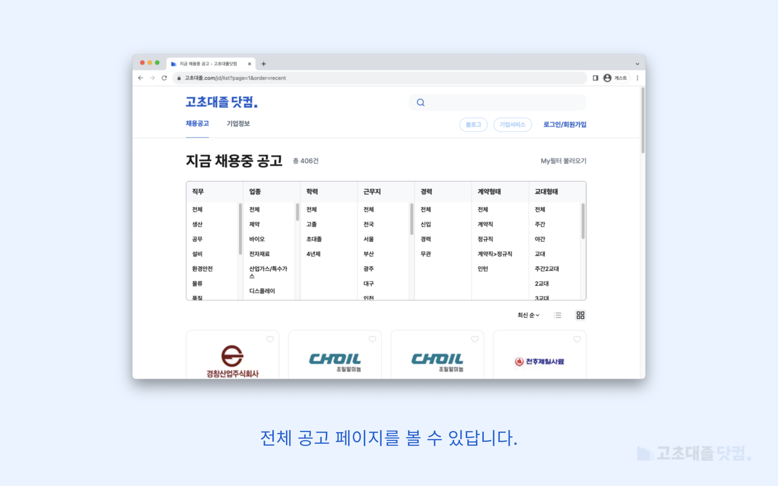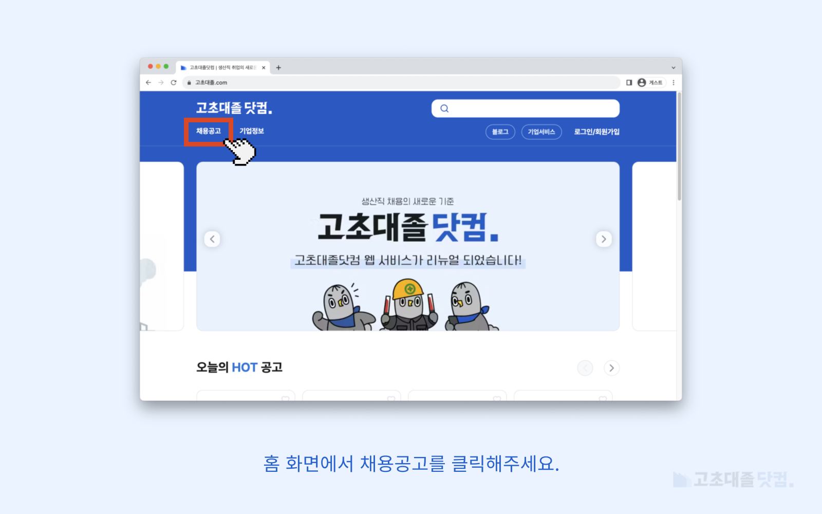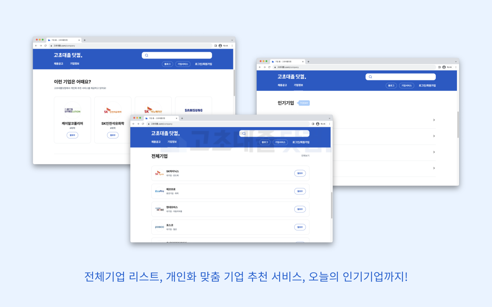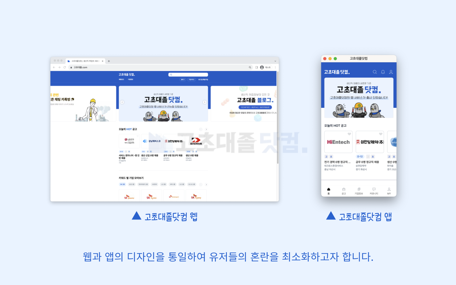 이번 리뉴얼에서는 디자인이 눈에 띠게 변경되었습니다. 고초대졸닷컴 앱이 새로 런칭된 사실을 모두가 다 아실거라 생각합니다!