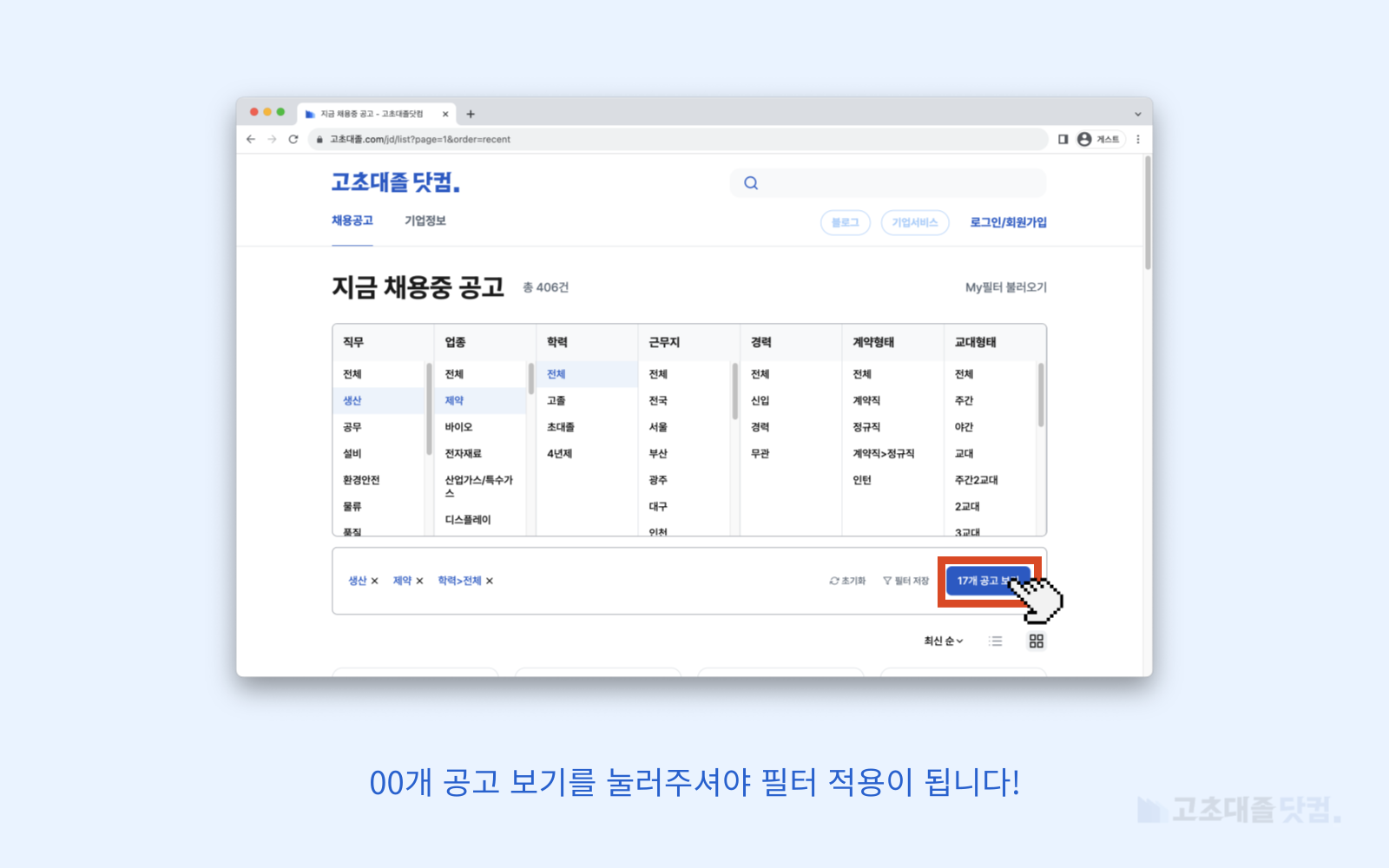 또한 필터 사용의 경우에도 반드시 공고보기를 눌러주셔야 합니다.