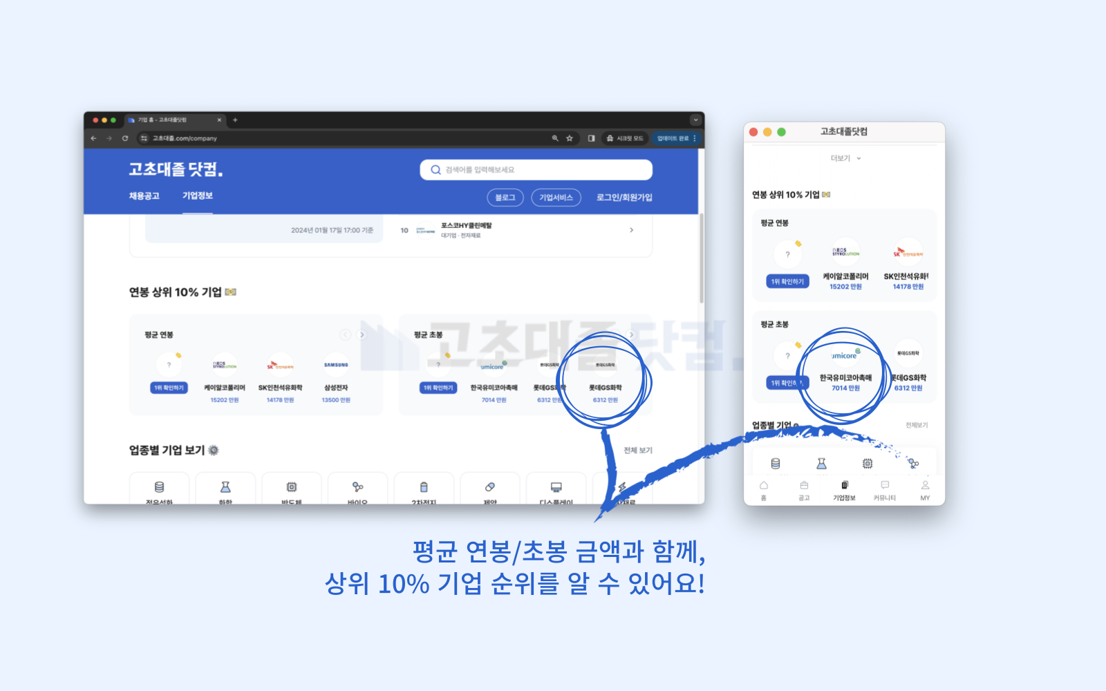 많은 유저분들께서 원하시던 인기기업, 연봉, 초봉, 채용소식까지 한 눈에 볼 수 있어요!