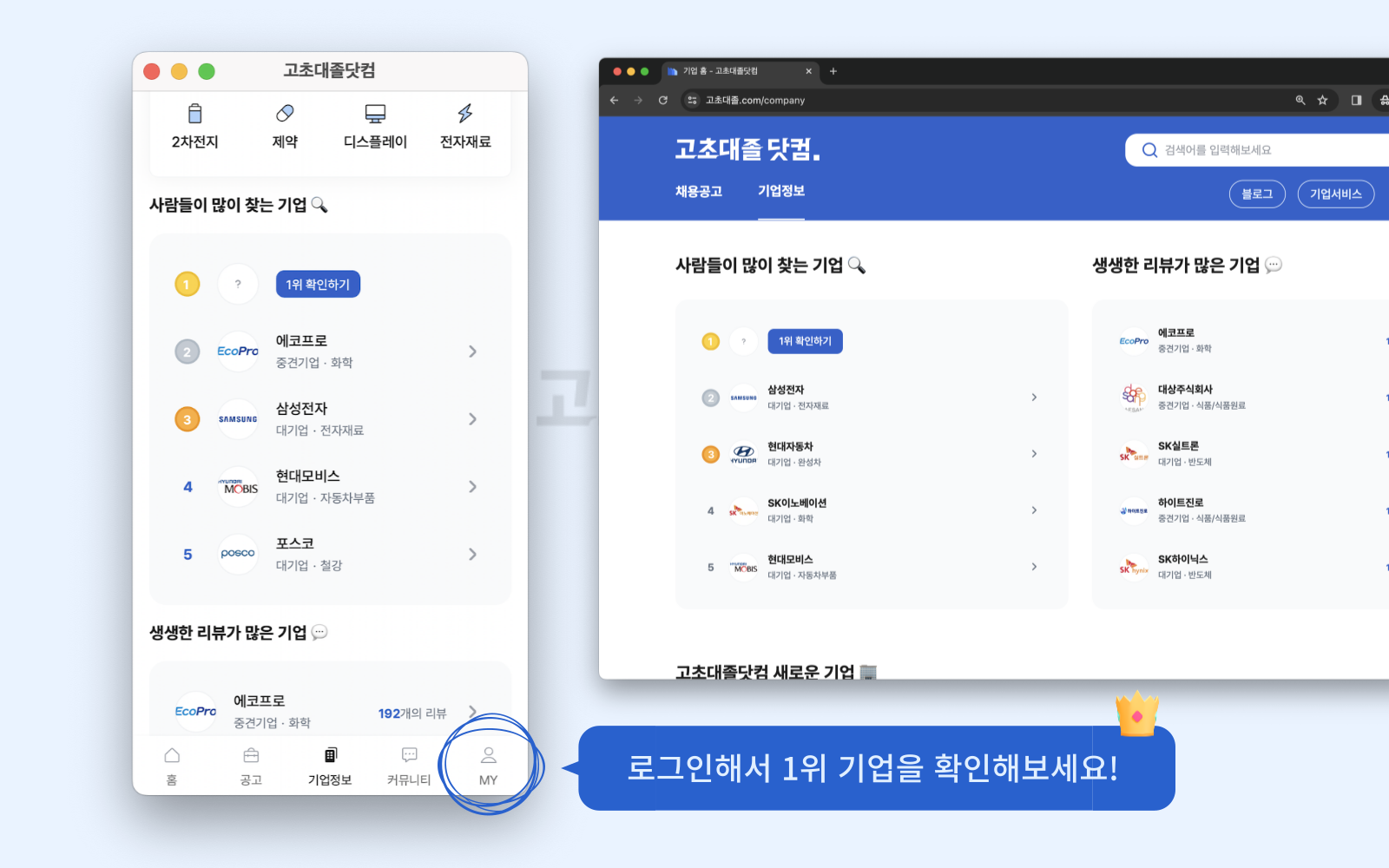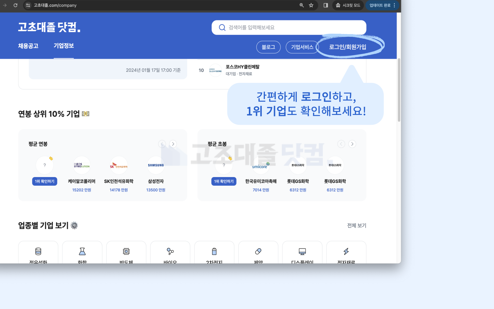로그인 해서 1위 기업 알아보고,