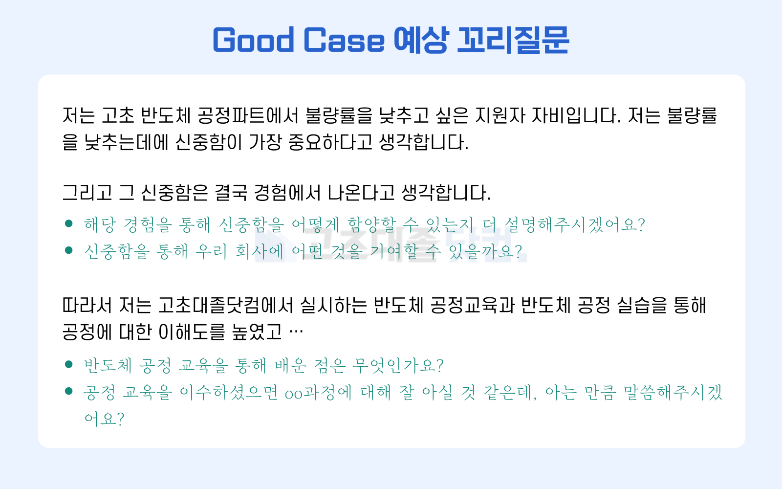 면접 문항별로 채용담당자가 어떤 의도를 가지고 있는지, 지원자는 어떤 전략을 취해야할지 고초대졸닷컴과 함께 알아봅시다.