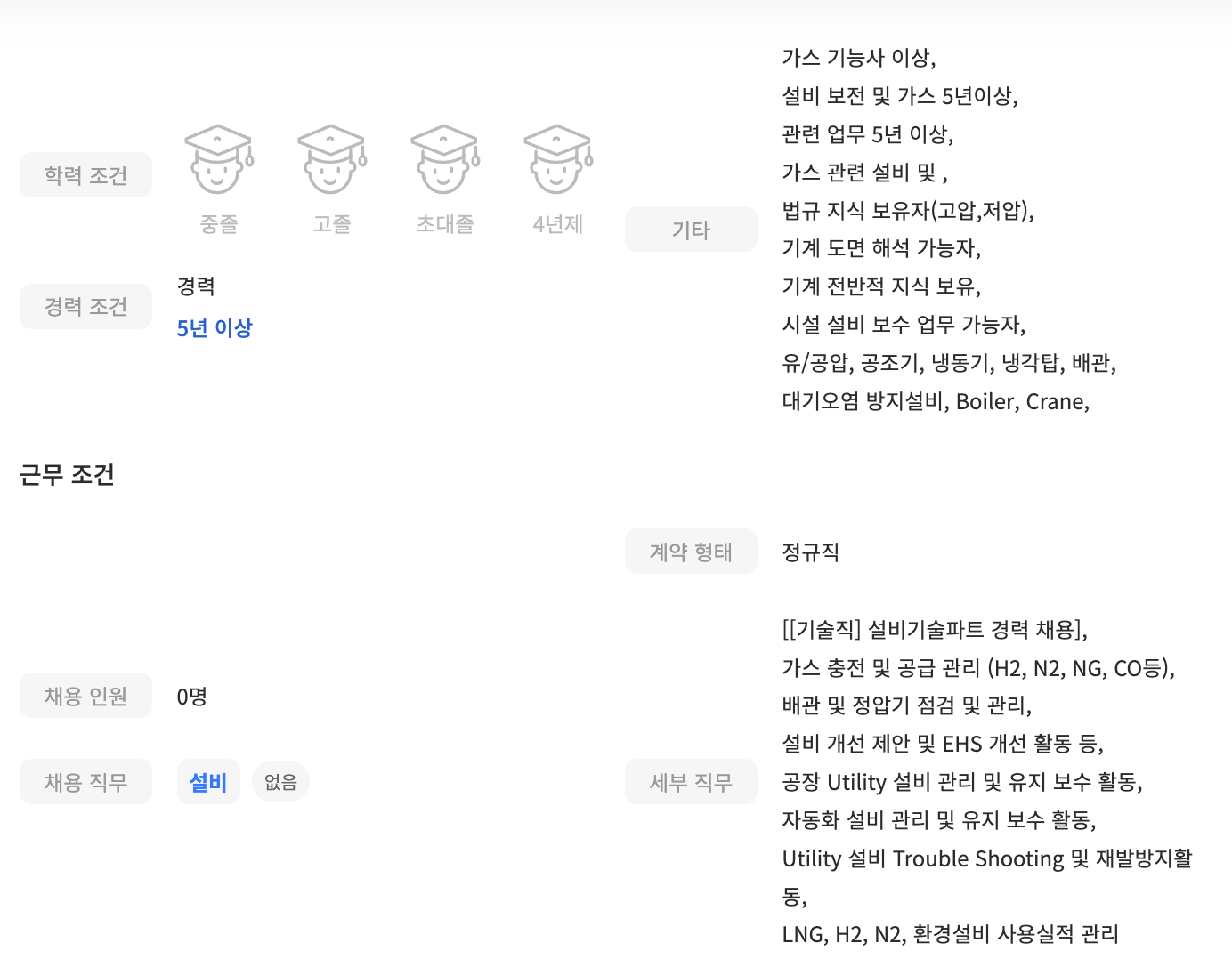 그리고 위험물 관리 하는 일 / 개선 하는 일 / 유지보수 하는 일 등의 키워드로 검색해보세요. 만약 하는 일이 한 줄로 설명돼있다면, 그것 자체를 검색해보세요.