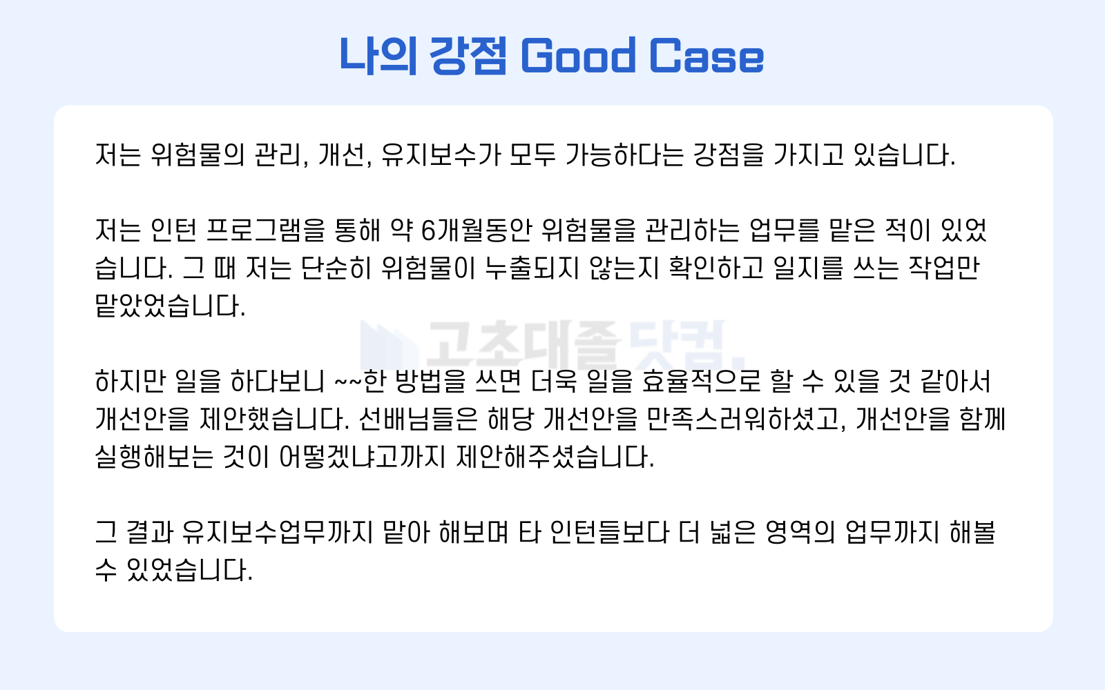 이에 대비하는 질문까지 준비해두면 합격에 더욱 가까워지겠죠?