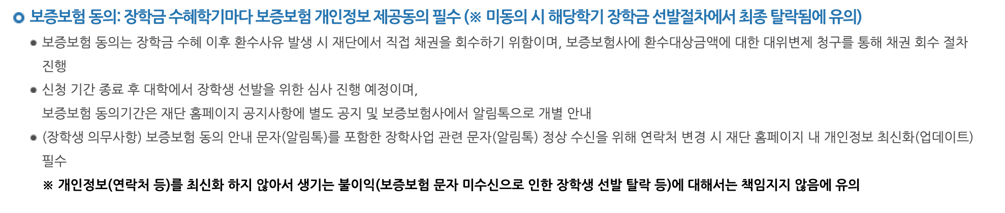 일정 기간이 지나면 보증보험 동의를 구하는 알림톡을 받으시는 분들이 있습니다. 만약 이 알림톡을 받으면 장학금에 선정에 90% 가까워지신거라 생각하면 됩니다.