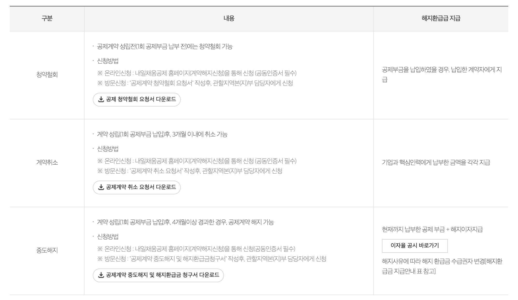 중도해지의 경우 청약철회, 계약취소, 중도해지가 있습니다. 자세한 내용은 아래 홈페이지를 참고하시길 바랍니다.