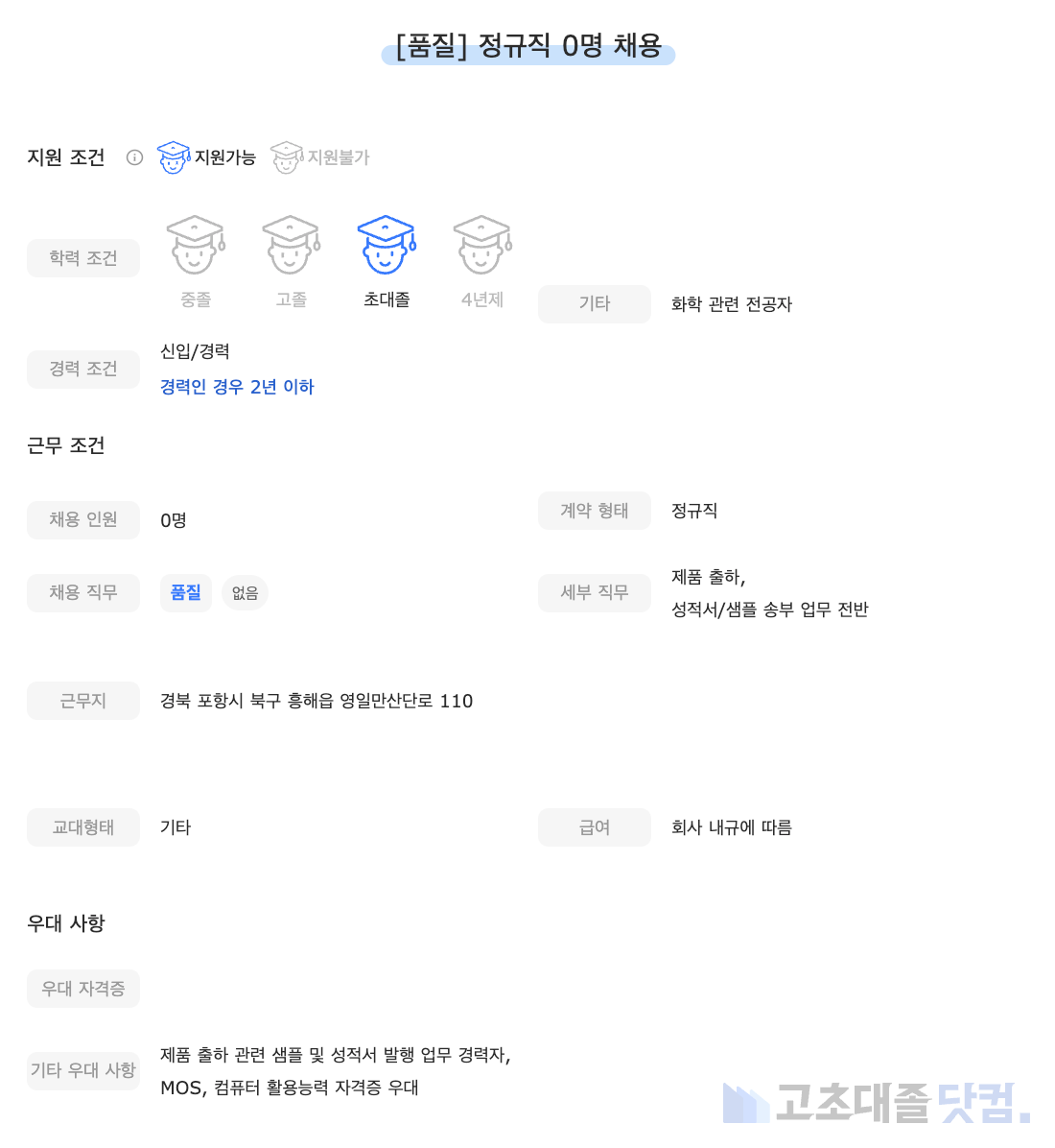 고초대졸닷컴 주간 공고 분석 리포트 입니다.