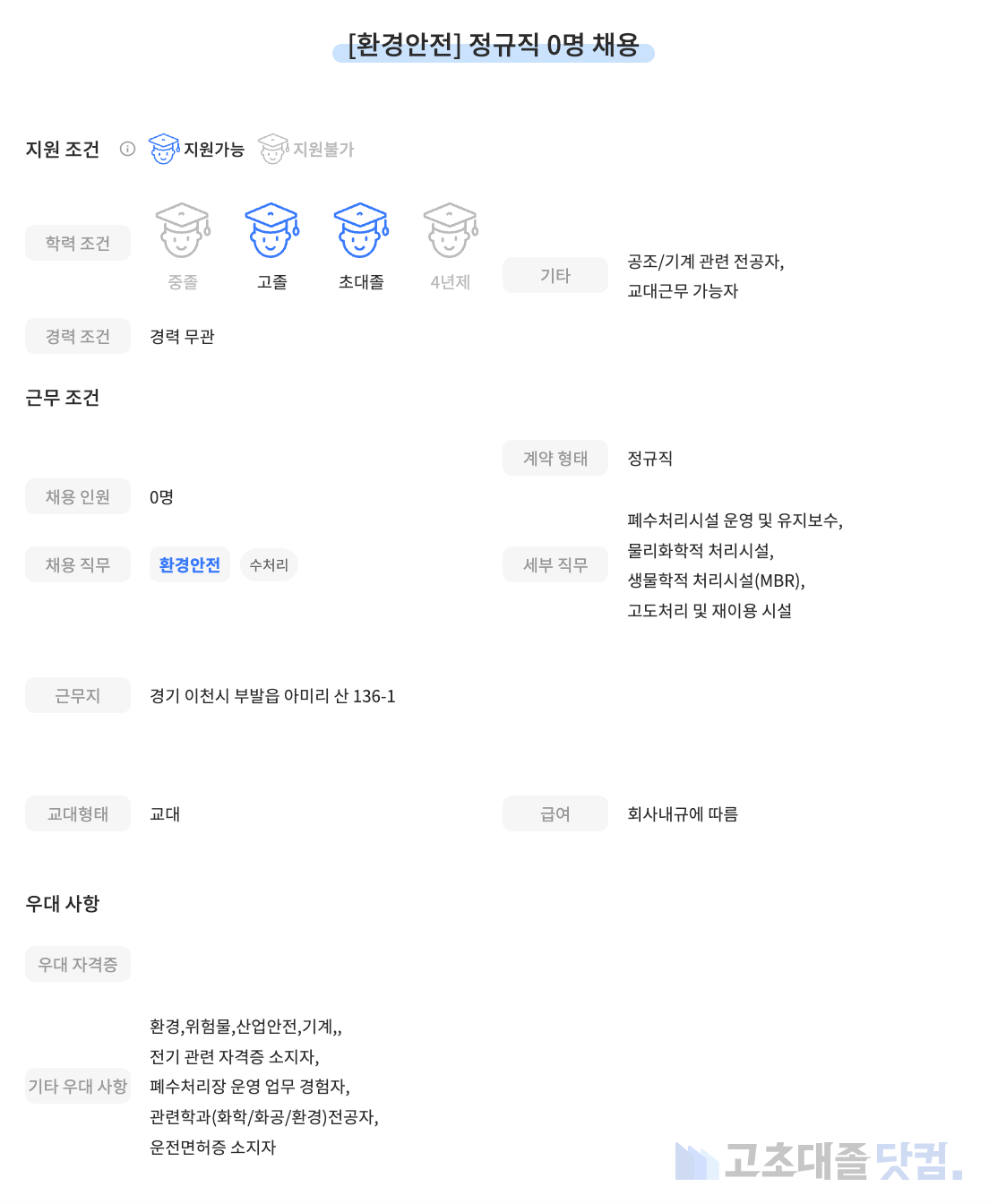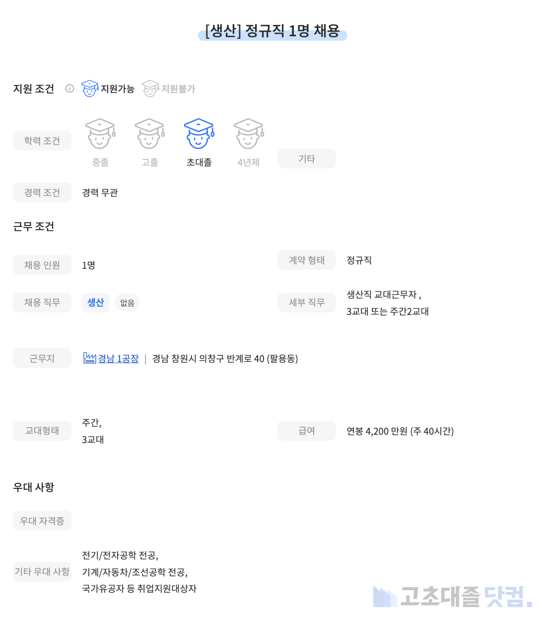 고초대졸닷컴 주간 공고 분석 리포트 입니다.