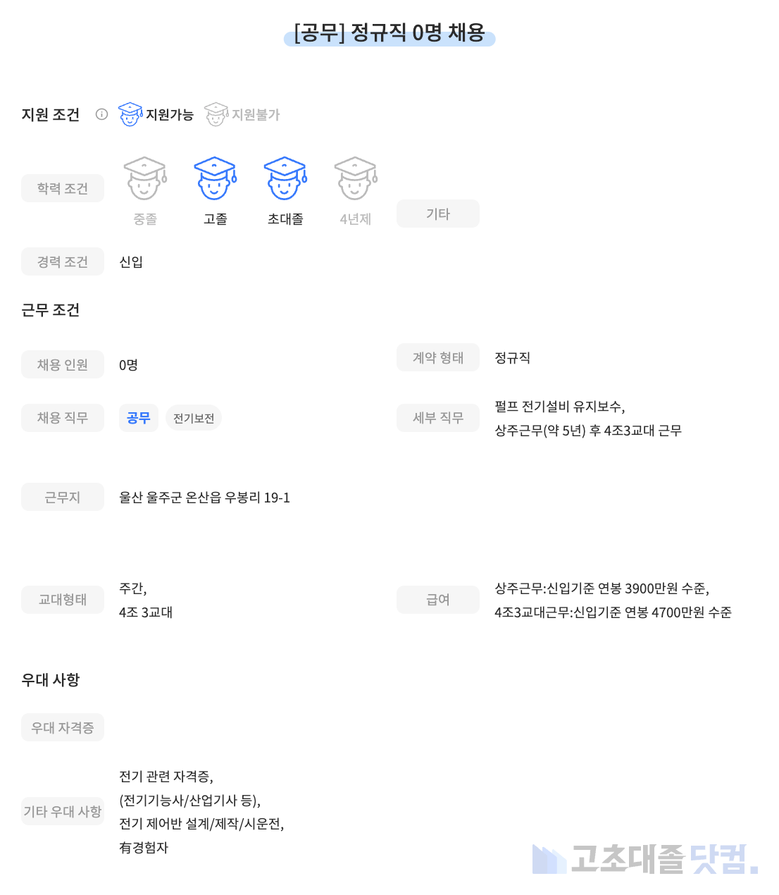 [무림피앤피] 공무(전기) 신입0명 정규직 채용