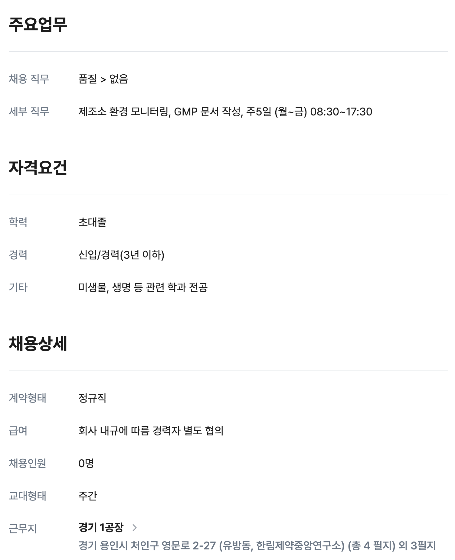 한림제약 생산직 채용공고 - 고초대졸닷컴
