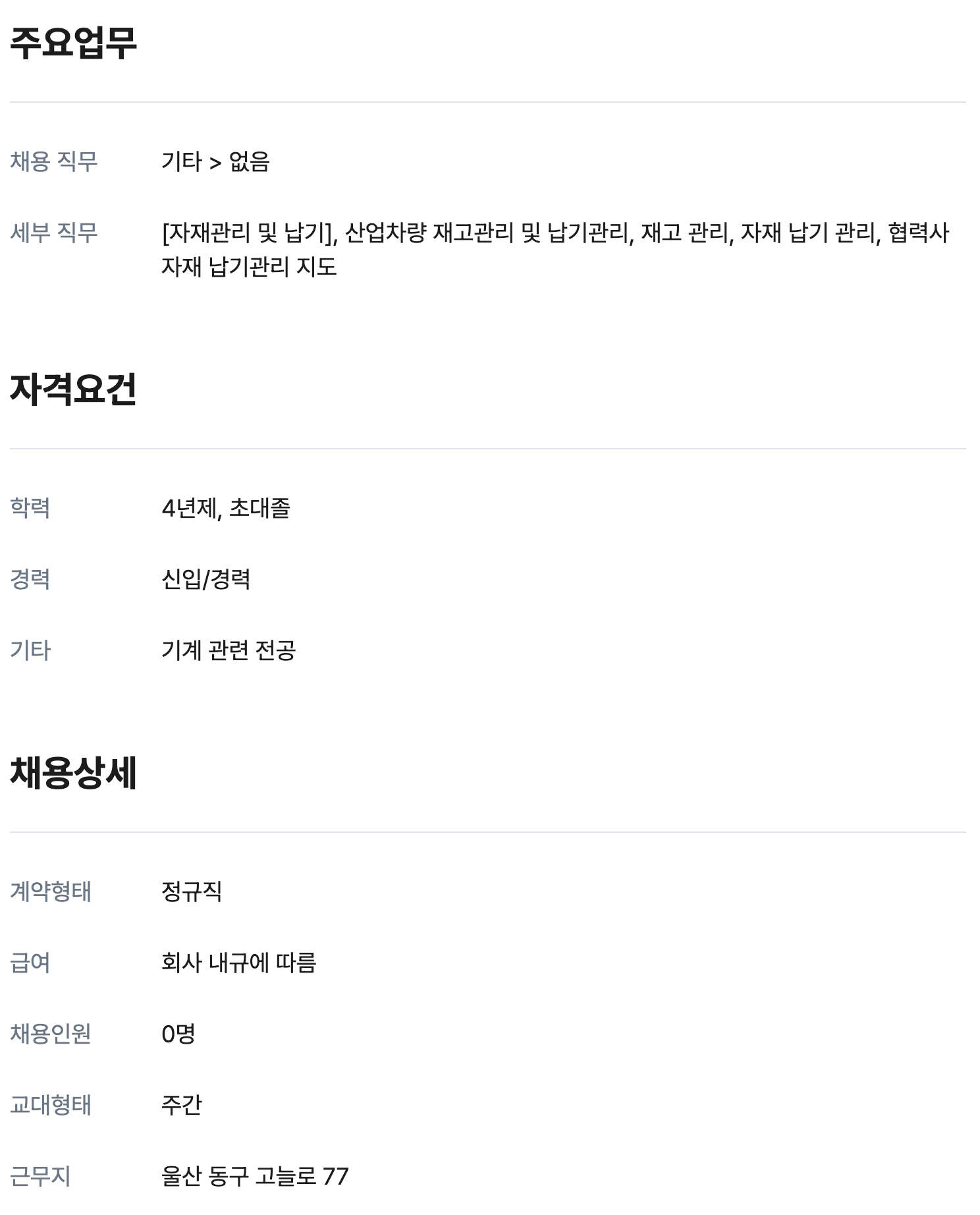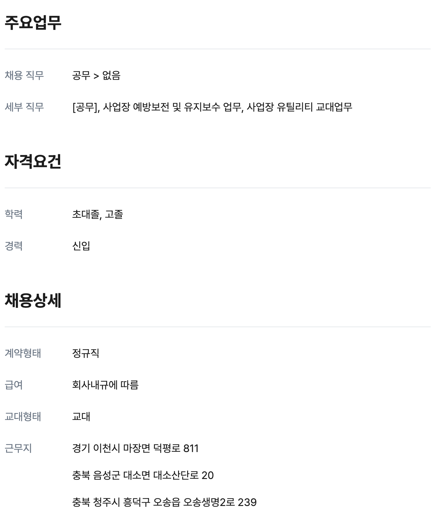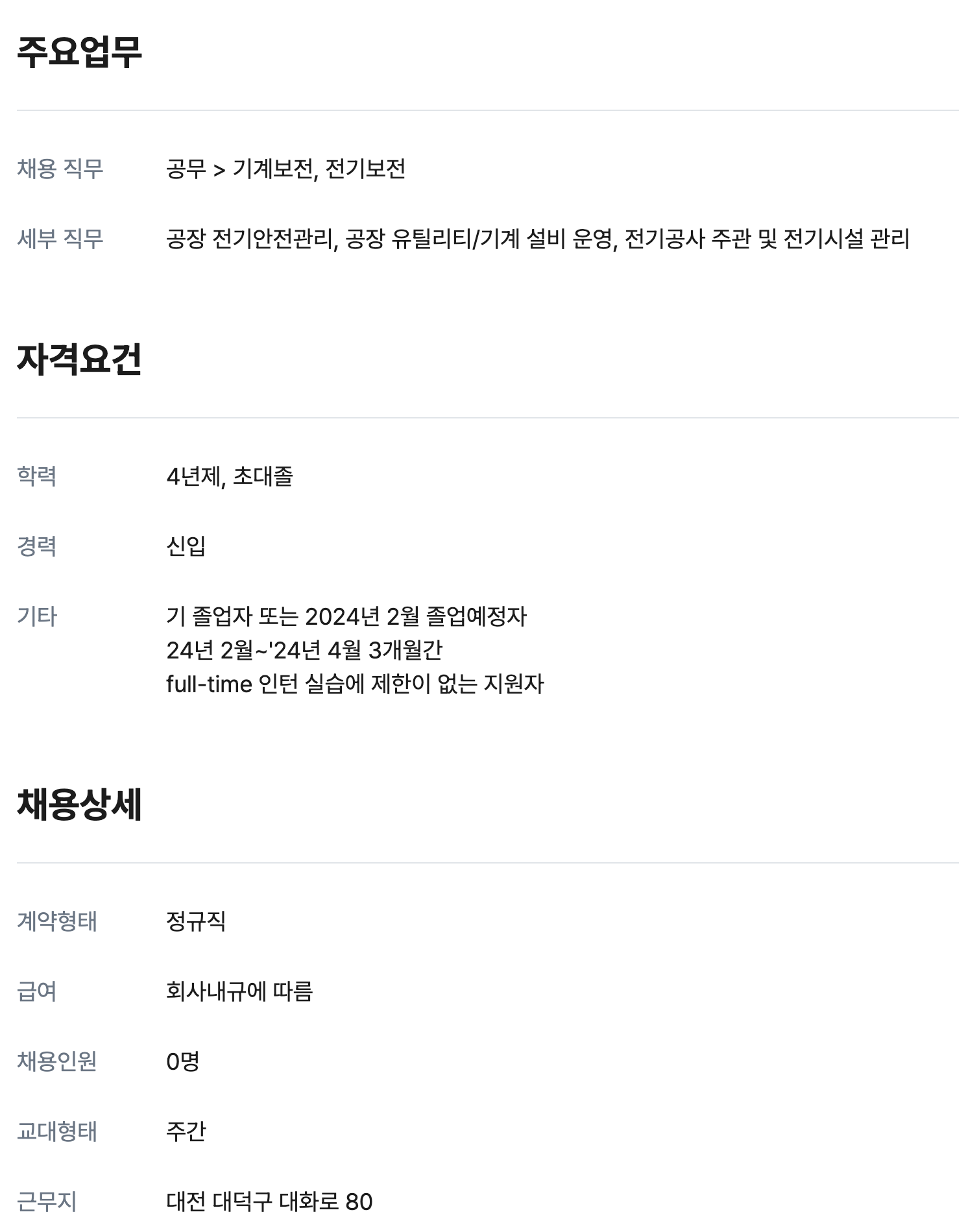 전기/유틸리티 신입 0명 정규직 채용