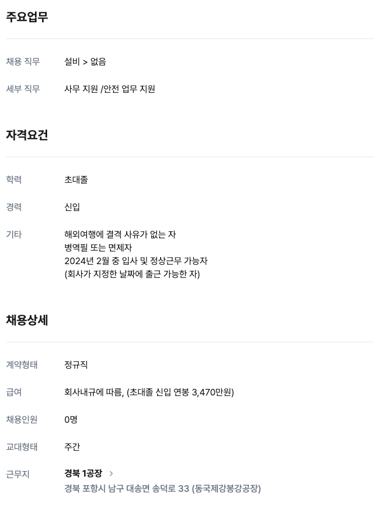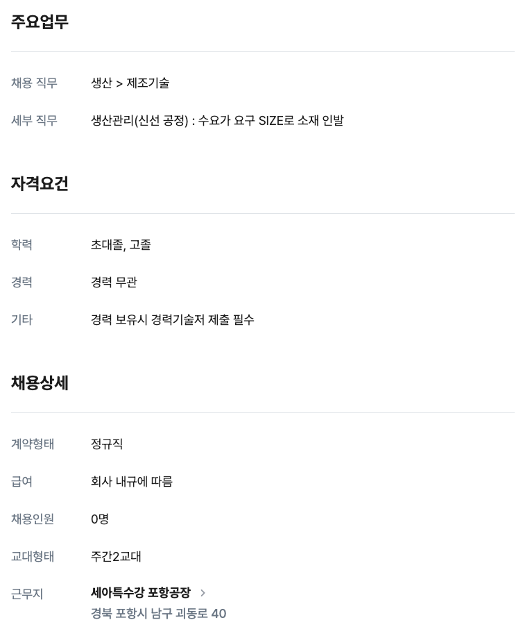 [세아특수강] 2024 세아특수강 포항 선재생산팀(정규직) 채용