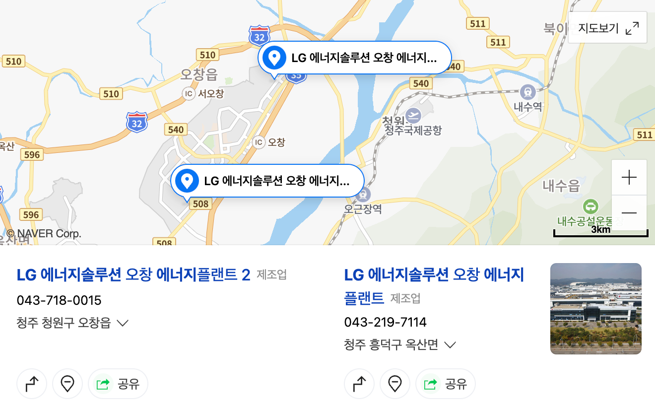 LG에너지솔루션은 '오창 에너지플랜트'라는 이름으로 청주시 오창읍 일대에 2개의 공장을 가동하고 있습니다.