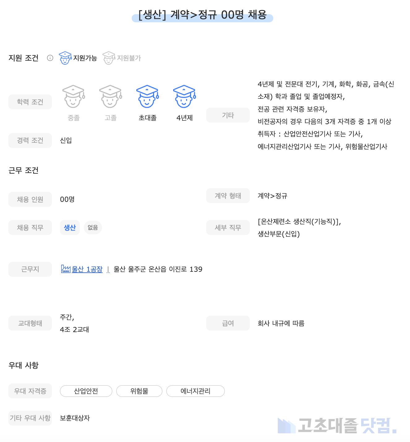 [고려아연] 생산 신입 00명 채용