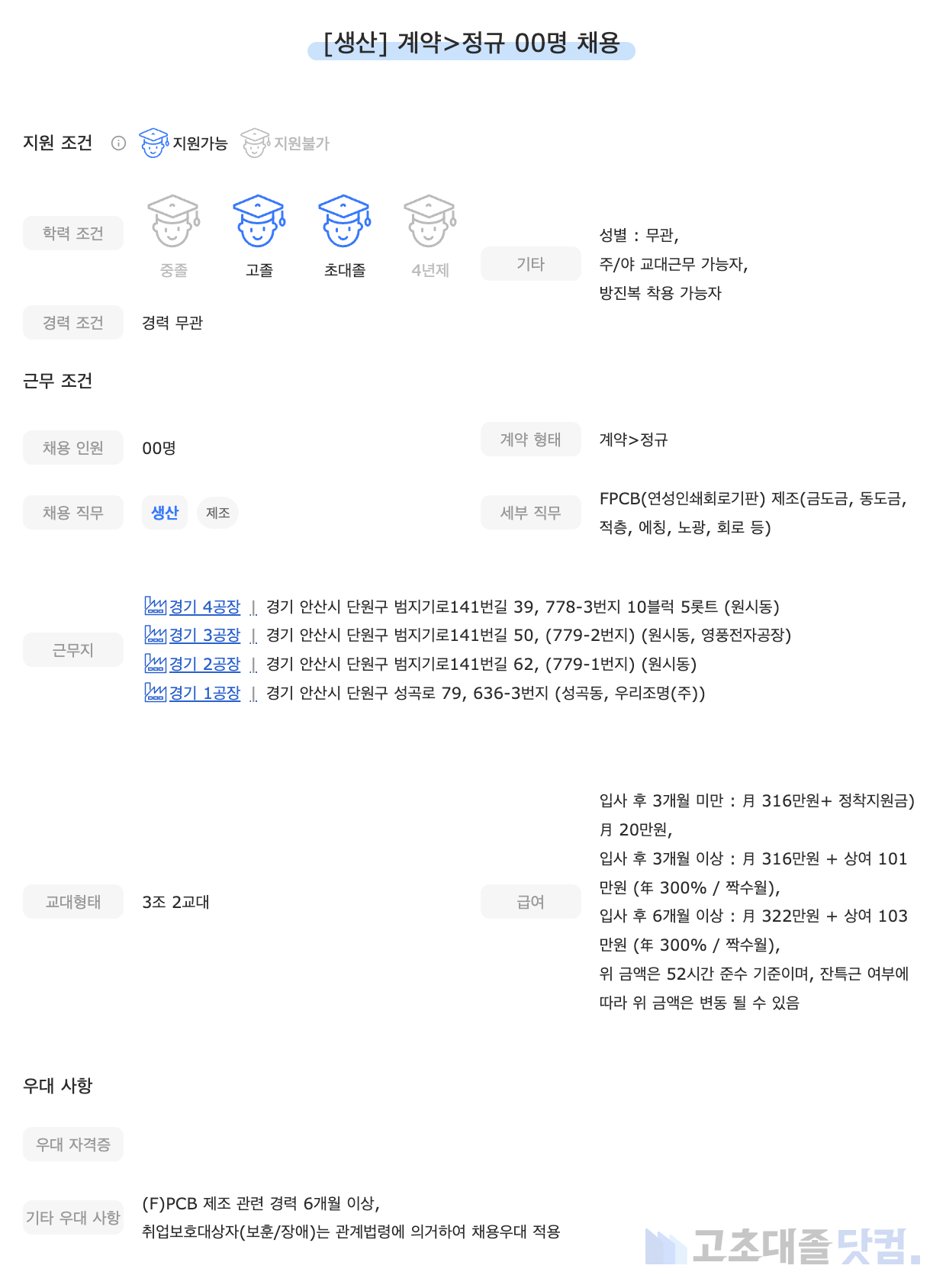 고초대졸닷컴 주간 공고 분석 리포트 입니다.
