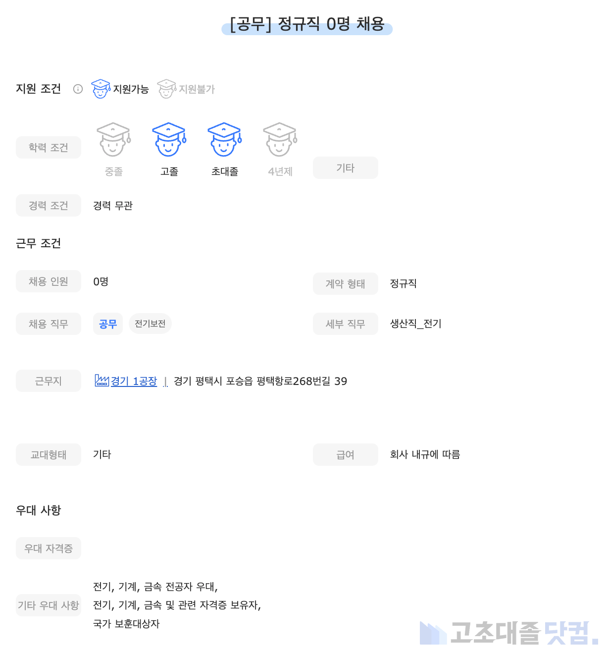 [대한제강] 전기 0명 정규직 채용