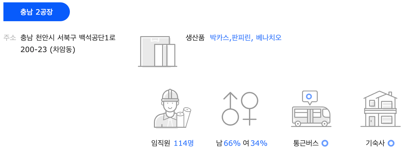 동아제약은 천안과 이천, 당진에 공장을 두고 있습니다.
