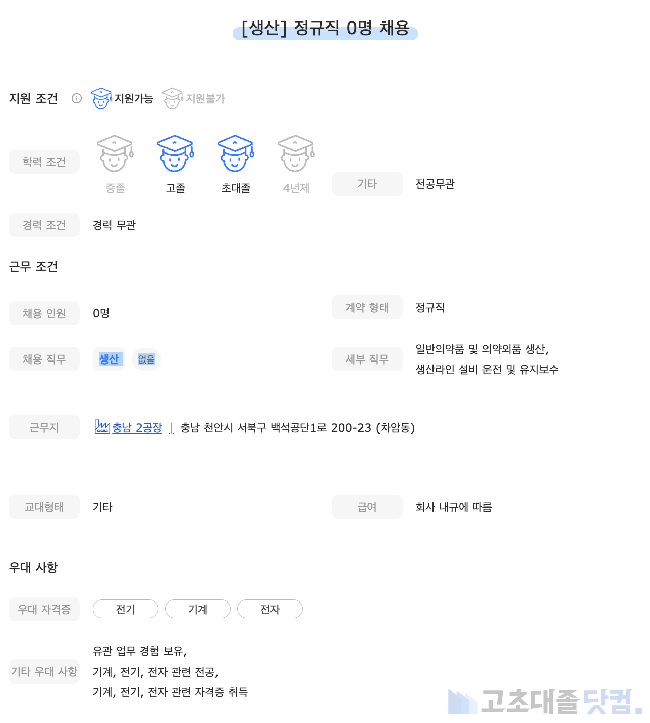고초대졸닷컴 주간 공고 분석 리포트 입니다.