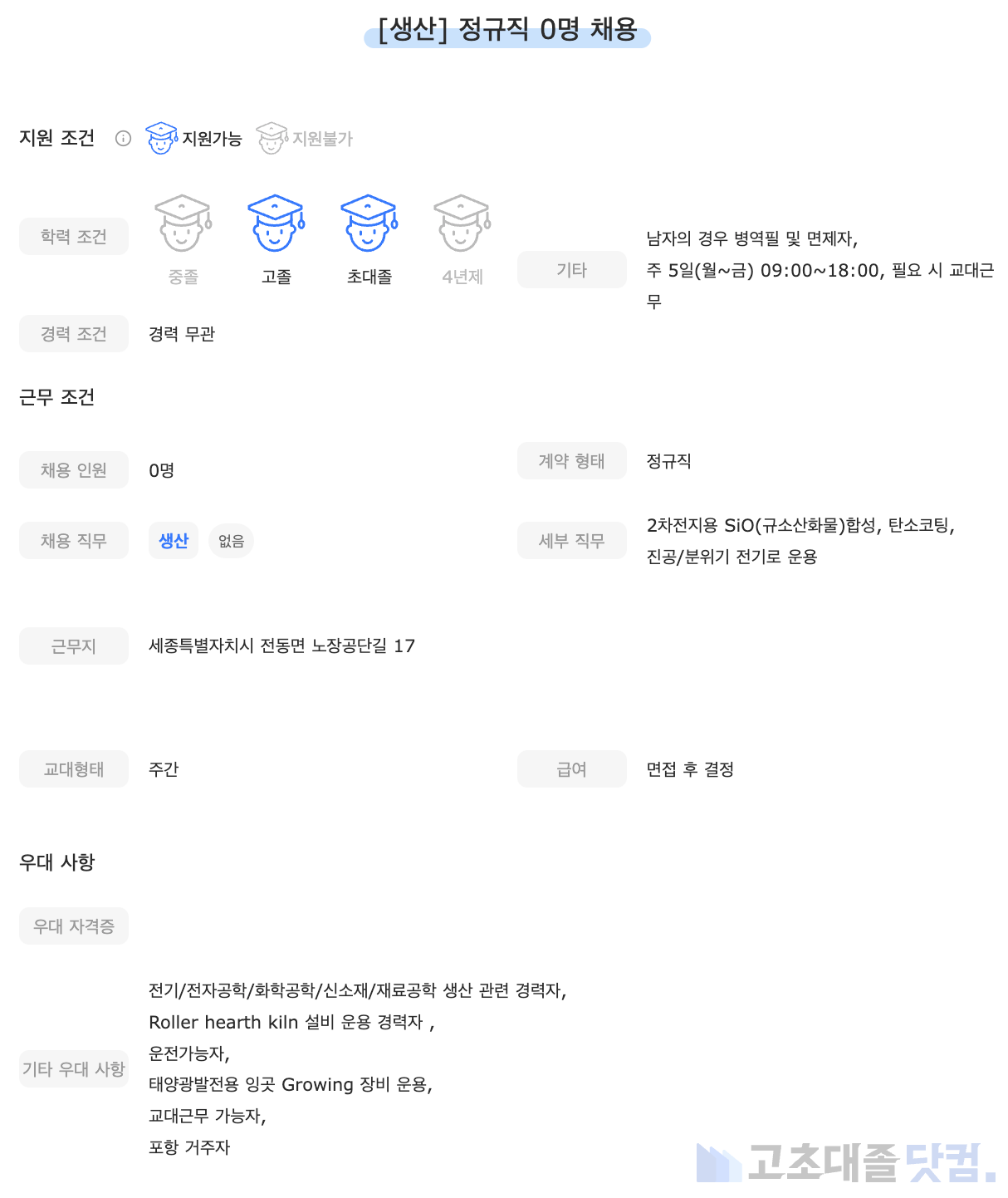 [포스코실리콘솔루션] 생산 0명 정규직 채용