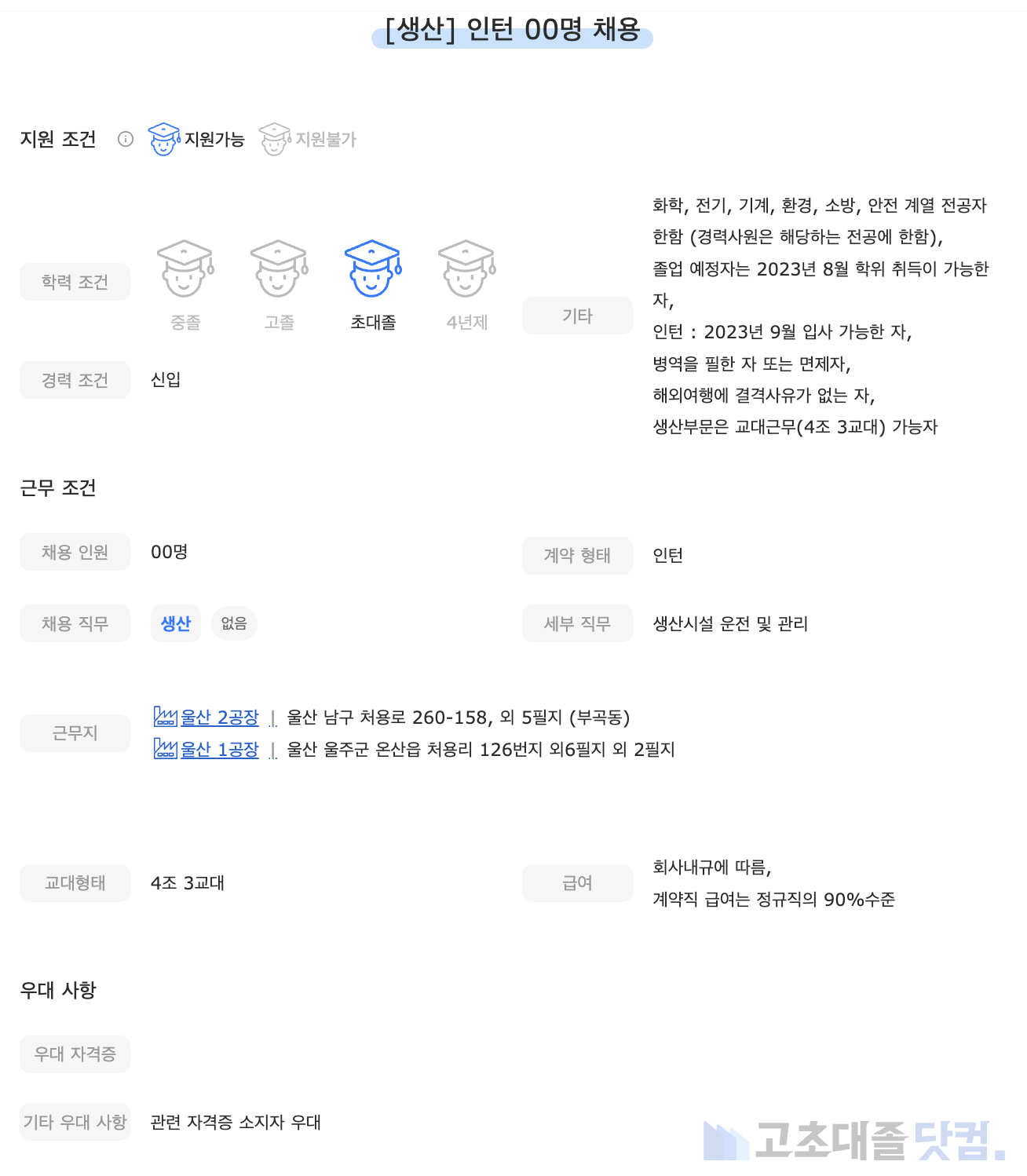 고초대졸닷컴 주간 공고 분석 리포트 입니다.