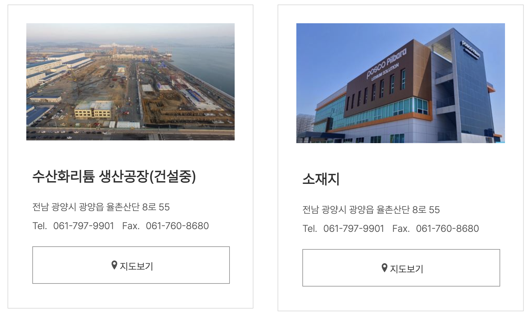 포스코필바라리튬솔루션은 현전남 광양시 율촌산단에 공장을 건설중입니다.