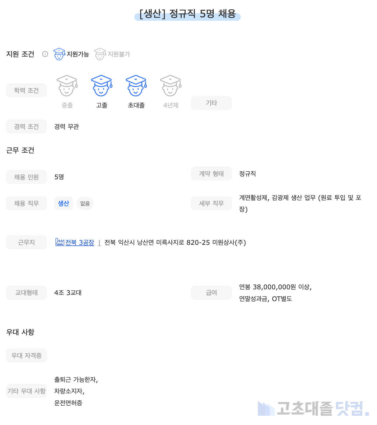 6월 다섯째 주, 고초대졸닷컴을 통해 많은 분들이 확인한 5개의 공고를 함께 살펴보겠습니다.