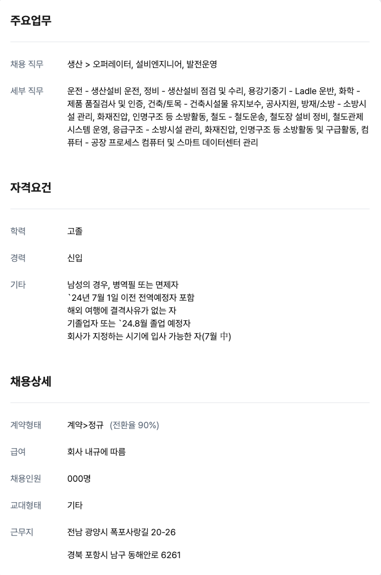 포스코 생산직 채용공고 - 고초대졸닷컴