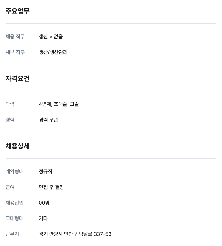 생산 00명 정규직 채용