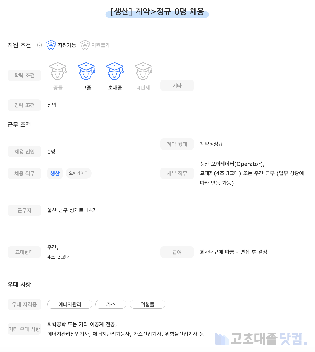 유니드 생산직 채용공고 - 고초대졸닷컴