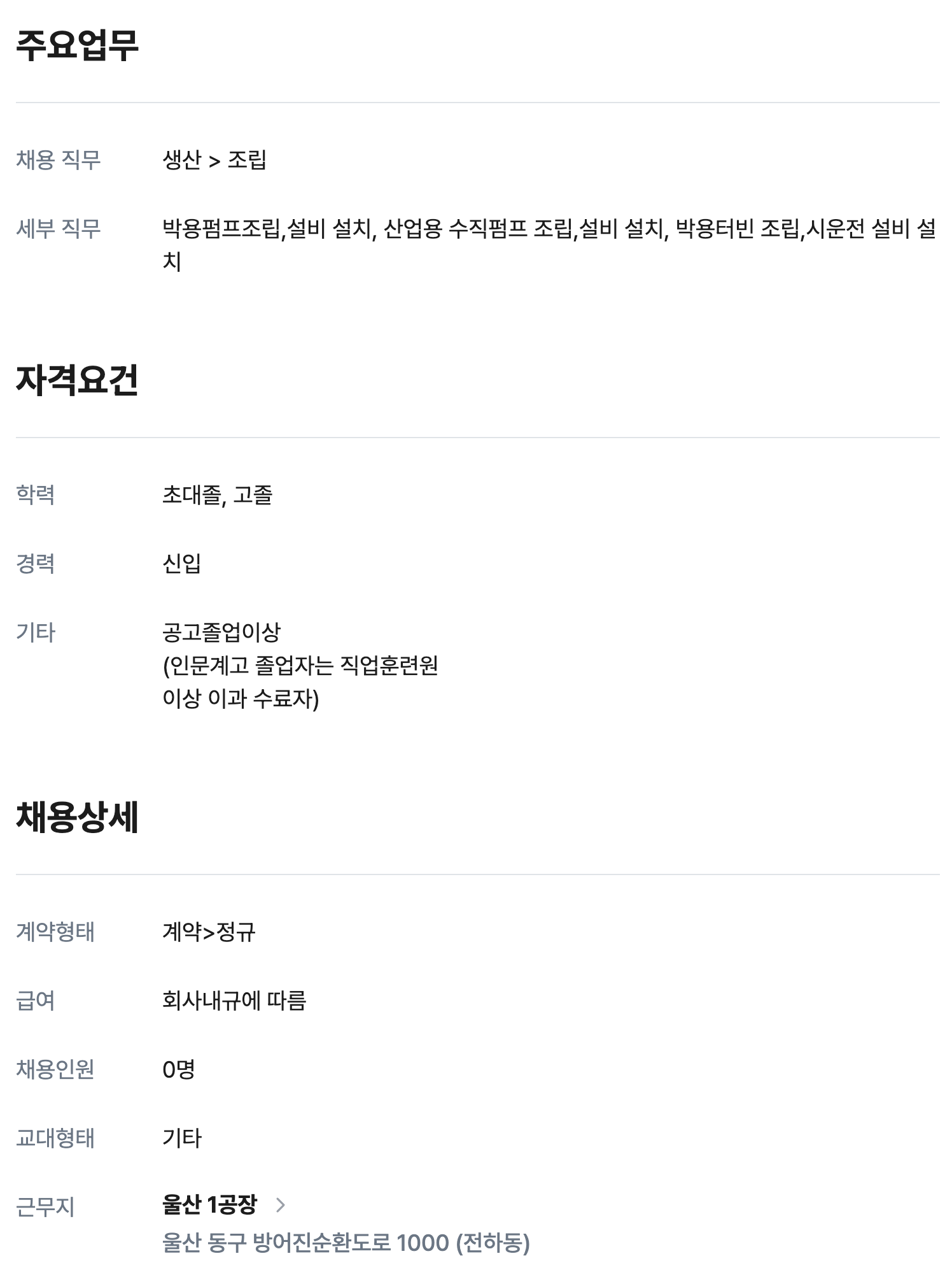 현대중공업터보기계 생산직 채용공고 - 고초대졸닷컴