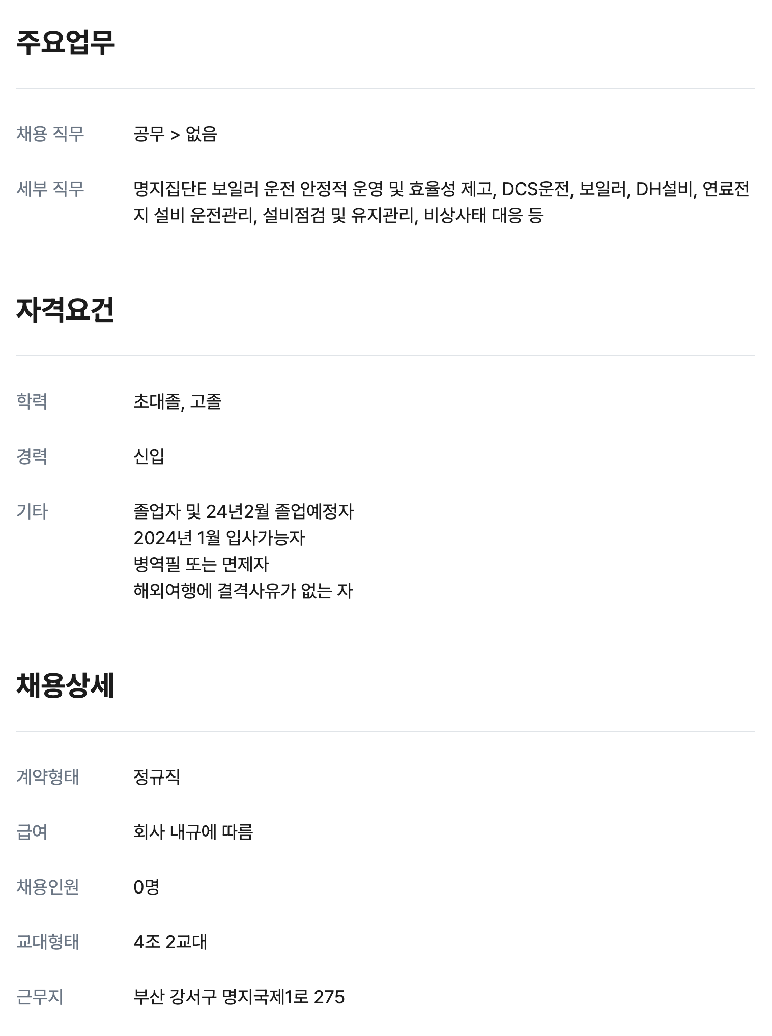 부산도시가스 생산직 채용공고 - 고초대졸닷컴
