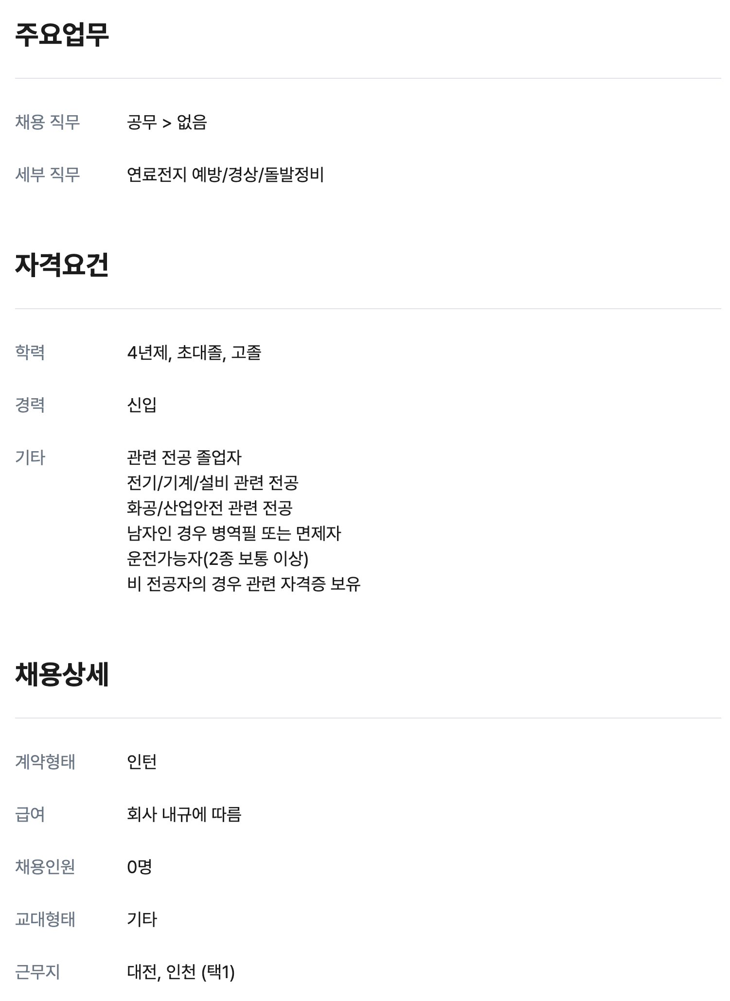 연료전지 정비 0명 인턴 채용
