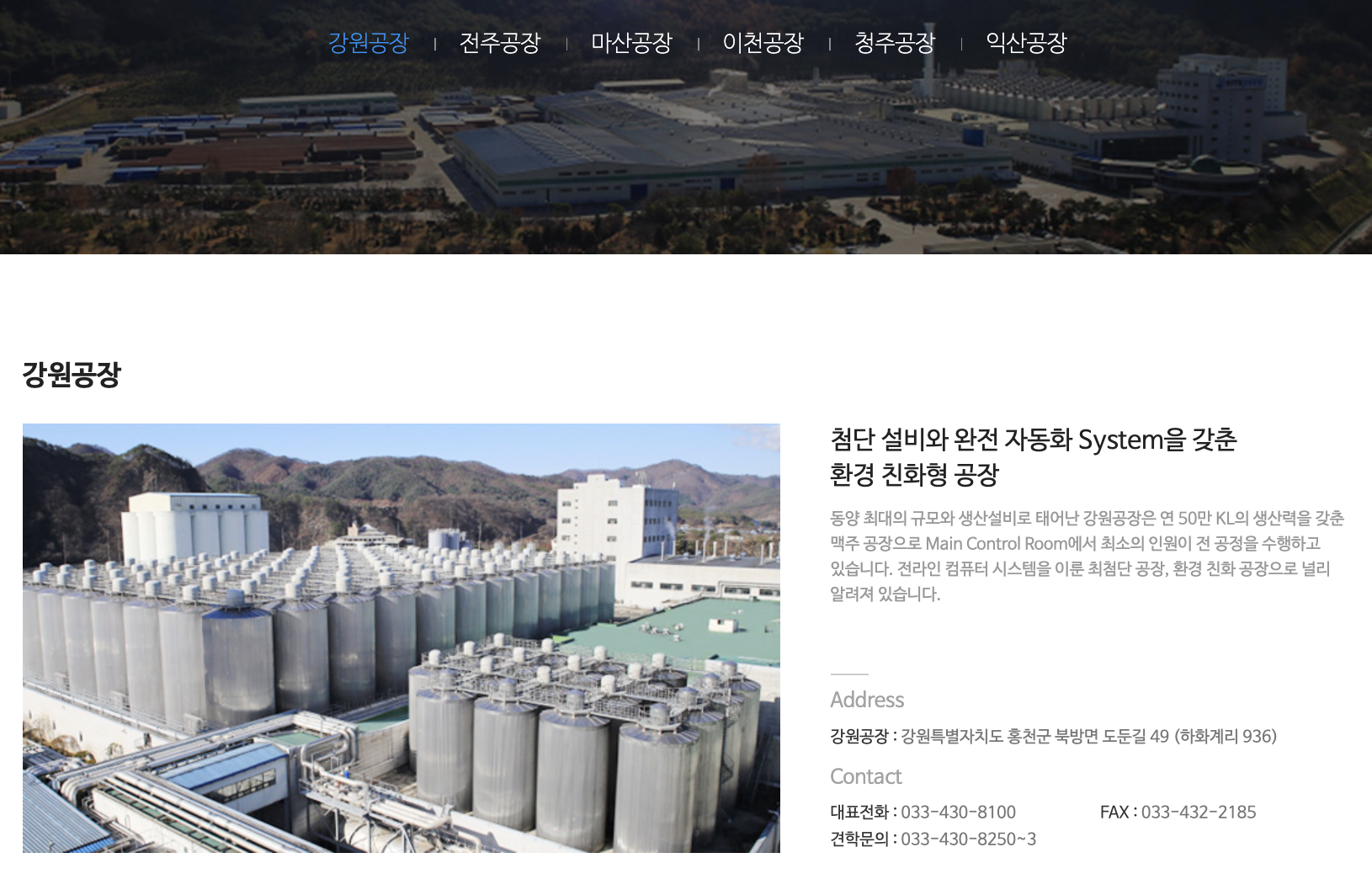하이트진로는 강원, 전주, 마산(창원), 이천, 청주, 익산 등에 공장을 두고 있습니다.