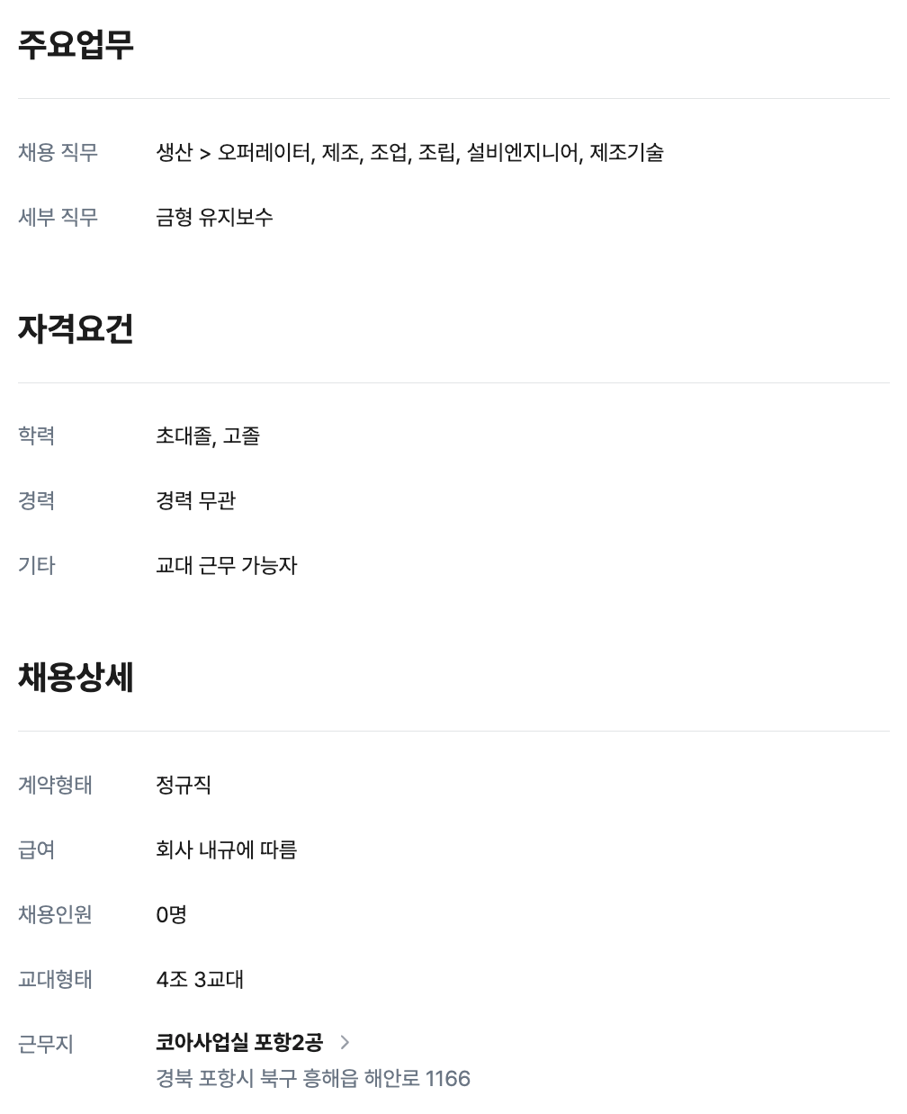[포스코모빌리티솔루션][포항] 금형보수 담당자 모집