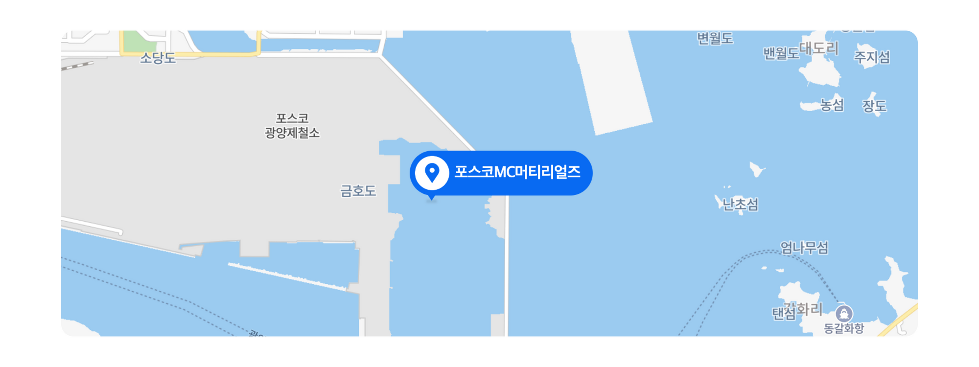 포스코엠씨머티리얼즈는 전남 광양시 포스코 광양제철소 내부에 위치하고 있습니다.