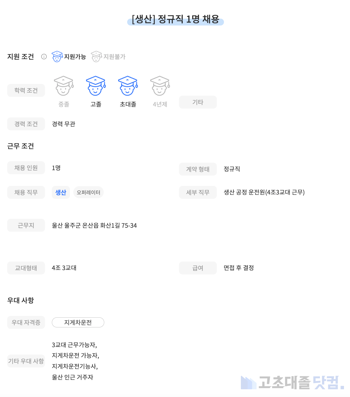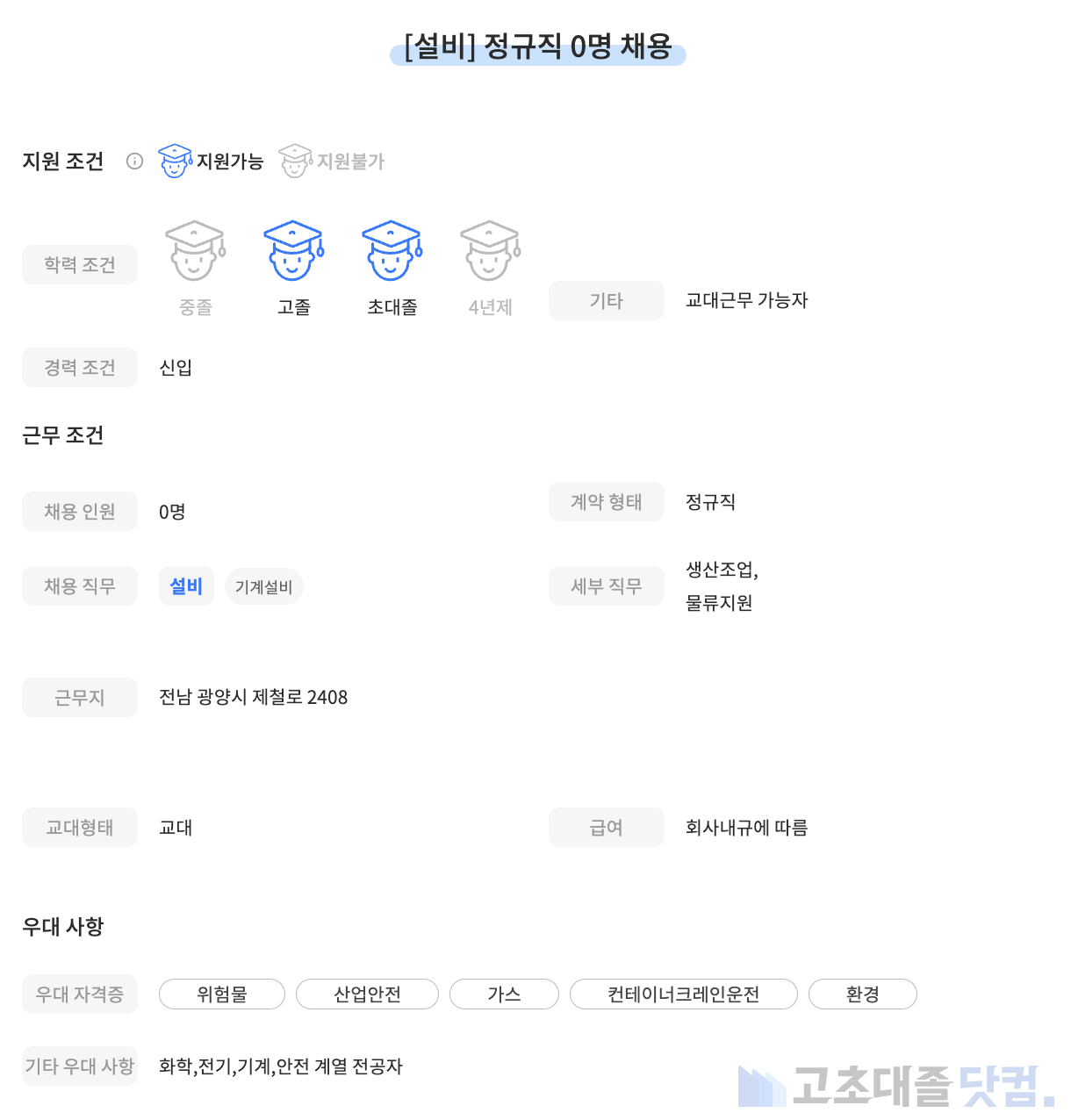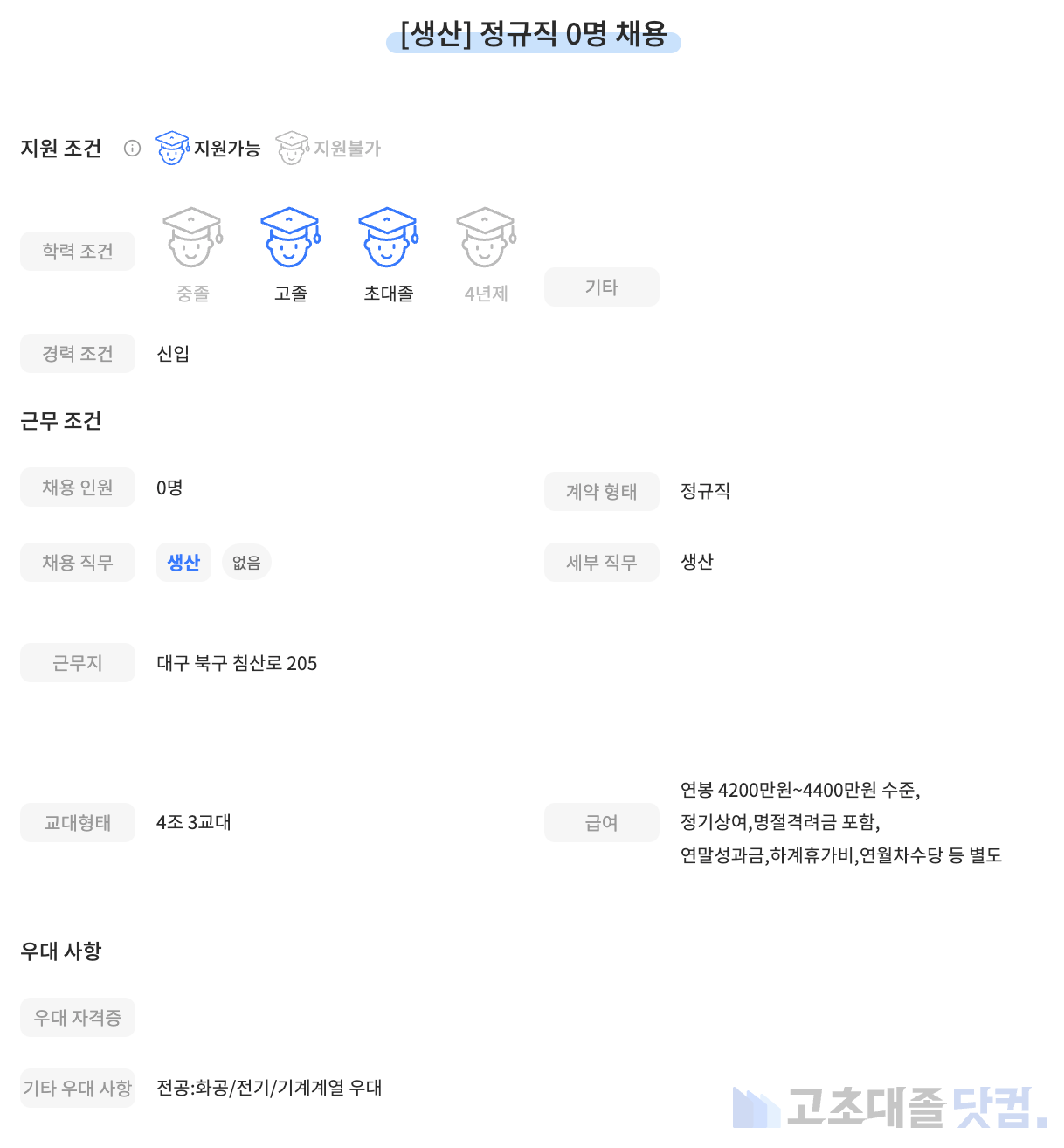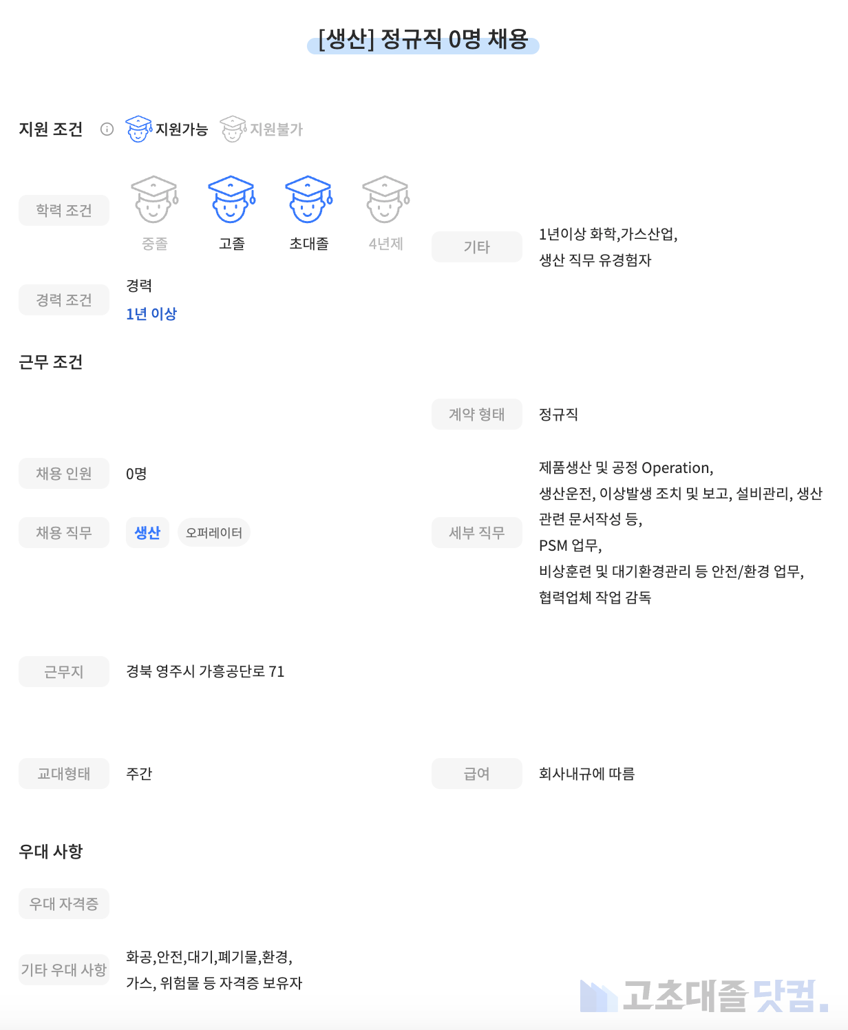 고초대졸닷컴 주간 공고 분석 리포트 입니다.